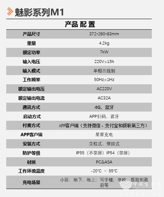 千航充電7kw魅影系列M1充電樁參數(shù)配置