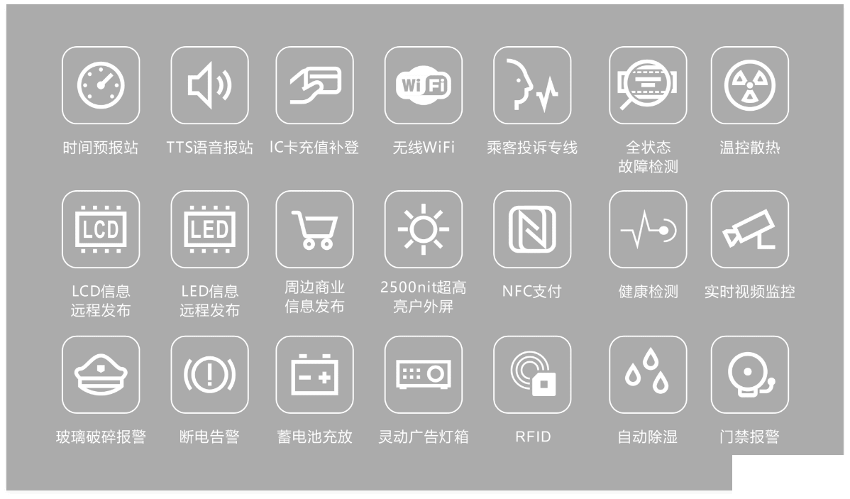 正先智能化公交電子站牌集成了公交信息查詢、車輛預(yù)報(bào)站信息發(fā)布、出租車揚(yáng)招預(yù)約、微信客戶端信息查詢、手機(jī)移動(dòng)端管理管家、周邊數(shù)字化信息發(fā)布、公共自行車信息查詢、地鐵信息查詢等智能化功能,智能化程度高,技術(shù)先進(jìn),運(yùn)行穩(wěn)定,兼容性可擴(kuò)展強(qiáng),功能豐富。