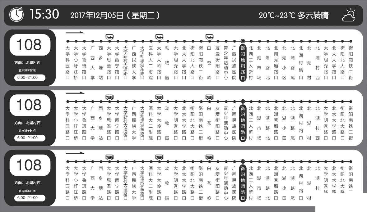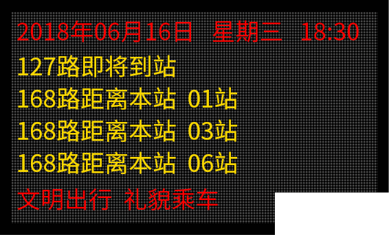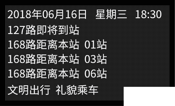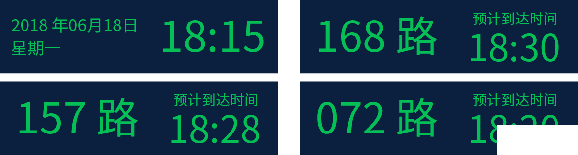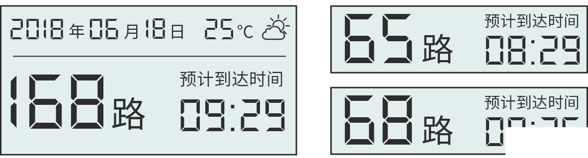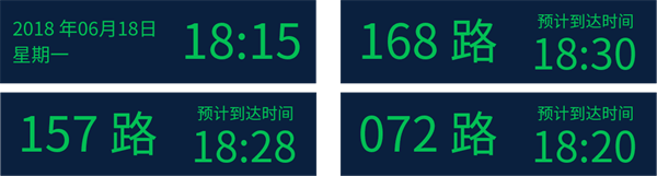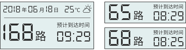 雙字LED預(yù)報(bào)站顯示,可實(shí)時(shí)顯示車輛到站信息,距離本站還有幾站,低功耗、易安裝等。