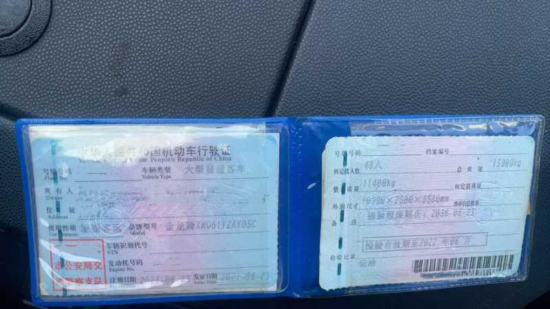 國五48座金龍旅游車,2021年6月上牌金龍6112型客車,玉柴310發(fā)動機,氣囊車,行李架,皮質(zhì)座椅,旅游客運,隨提檔過戶.