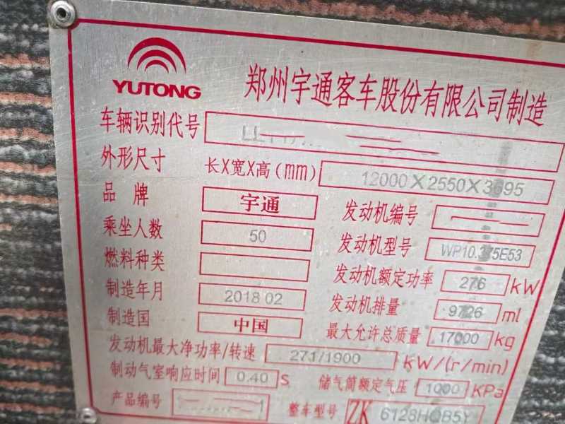 國(guó)五50座宇通6128營(yíng)運(yùn)車,2018年2月上牌的宇通6128,公路客運(yùn),大型高一級(jí)運(yùn)輸證,濰柴375發(fā)動(dòng)機(jī),行李架,有中門,氣囊車,定金留車。