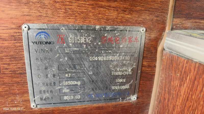 一批2015年上牌47座純電動(dòng)宇通6115營運(yùn)電車,寧德時(shí)代電池(有力神電池),162度,有電池加熱,鋼板減震,公路客運(yùn)性質(zhì),有中門,有營運(yùn)檔案,可提公路客運(yùn),外觀內(nèi)飾成色好。隨時(shí)提檔: