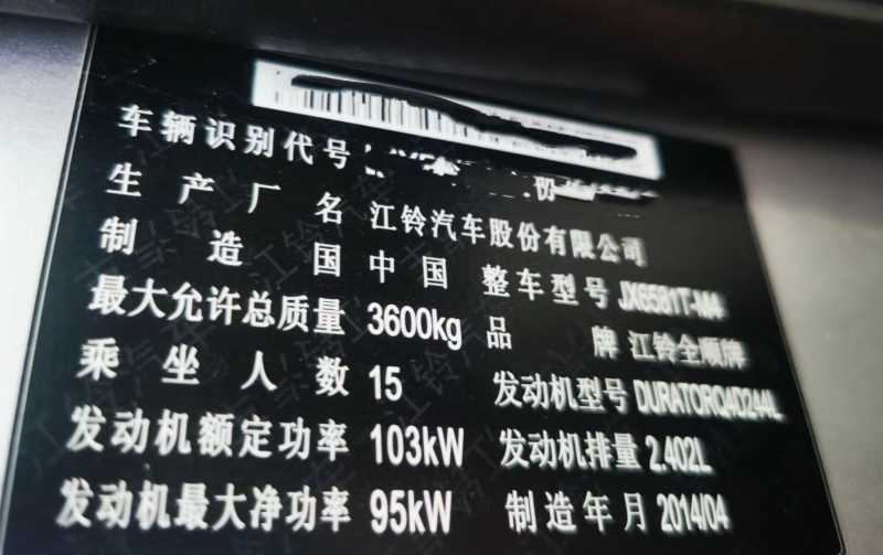 2014年7月 15座柴油非營(yíng)運(yùn)江鈴全順中巴