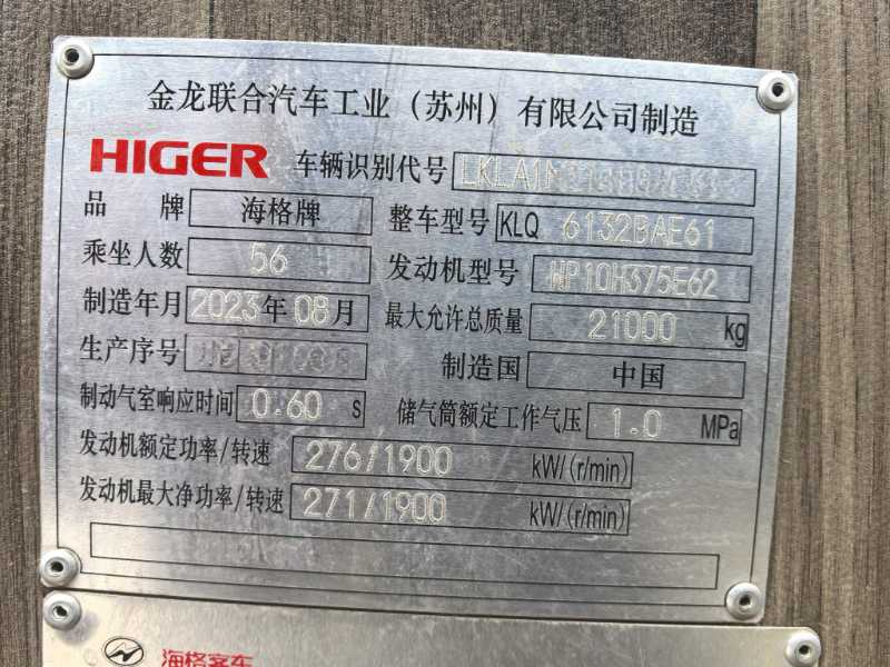 國六56座海格后吊輪,2023年9月上牌海格6132,濰柴375,氣囊車,有暖氣,中門,上移行李箱,公路客運可提營運。