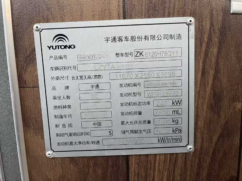準新國六39座半臥2023年39座宇通6120,濰柴336發(fā)動機,氣囊底盤,緩速器多功能方向盤帶定速巡航,豪華商務(wù)座椅帶腿拖,司機睡倉,上移行李倉,倍耐力九成新輪胎。