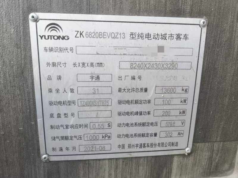 | 客車品牌 | 宇通客車 | 上牌時間 | 2021-09-29 |