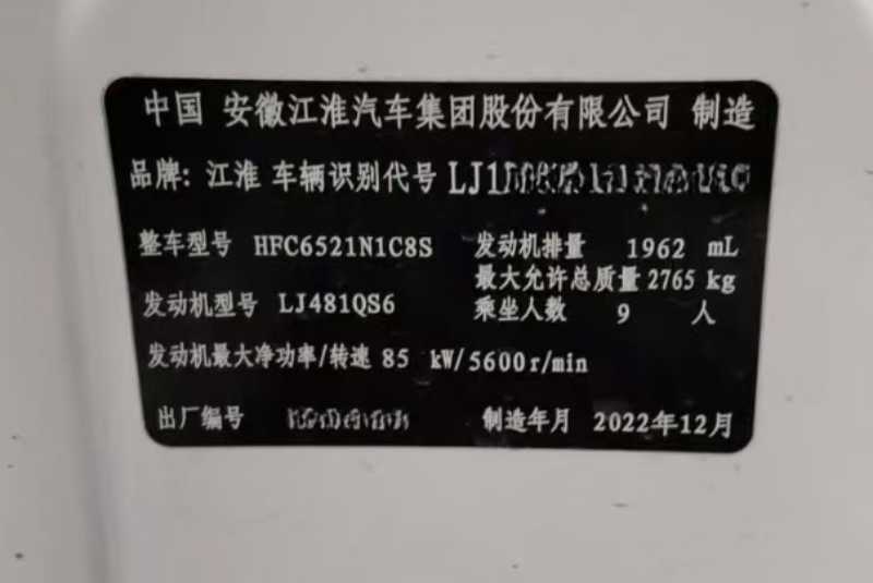 | 客車品牌 | 江淮客車 | 上牌時間 | 2023-01-19 |