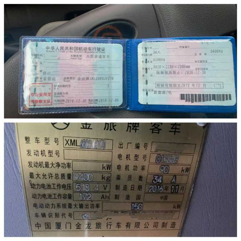 | 客車品牌 | 金旅客車 | 上牌時(shí)間 | 2016-12-29 |