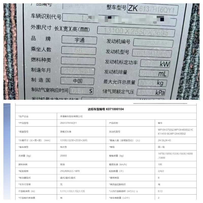 | 客車品牌 | 宇通客車 | 上牌時間 | 2024-01-18 |