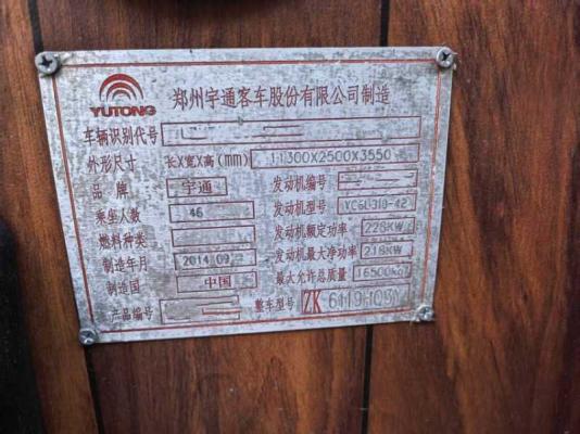 | 客車品牌 | 宇通客車 | 上牌時(shí)間 | 2014-10-06 |