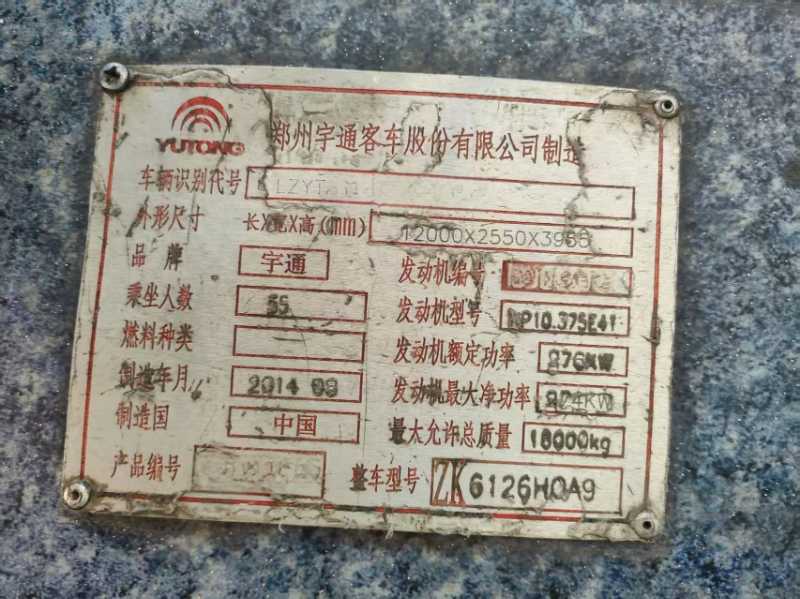 | 客車品牌 | 宇通客車 | 上牌時(shí)間 | 2014-09-11 |