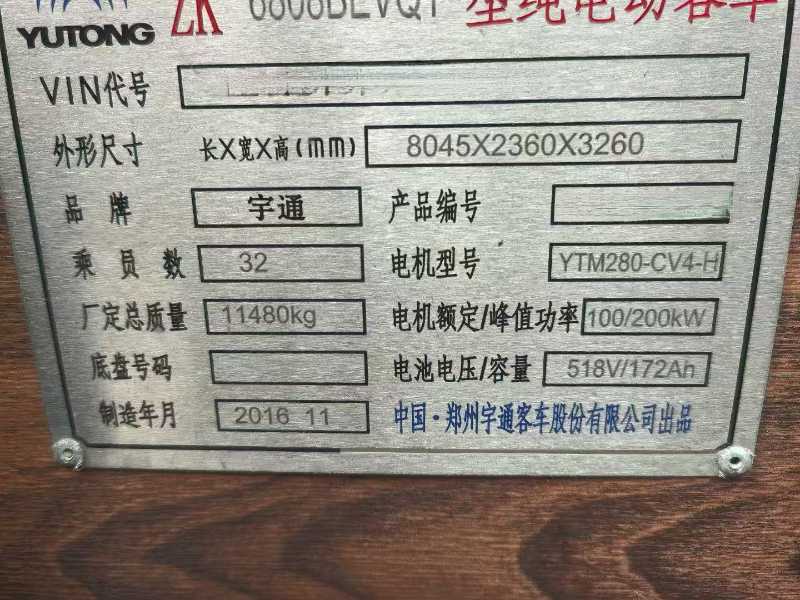 | 客車(chē)品牌 | 宇通客車(chē) | 上牌時(shí)間 | 2016-12-16 |