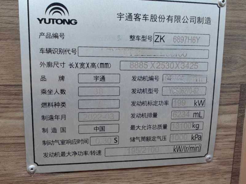 東北配置國六38座宇通旅游車