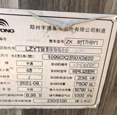 | 客車品牌 | 宇通客車 | 上牌時(shí)間 | 2021-09-23 |