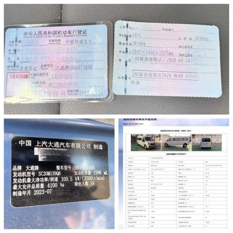 有公告18座大通V80中型車,2023年8月上牌大通6601,B照可駕駛,6速手動(dòng)擋,發(fā)動(dòng)機(jī)型號(hào):SC20M139Q6,2.0排量,旅游客運(yùn)可提營運(yùn),皮質(zhì)座椅,木紋地板,公里數(shù)少,同款還有一臺(tái)2022年上牌的,感興趣來電。