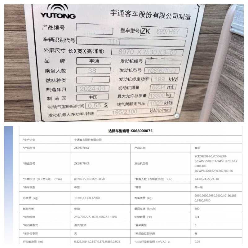 2024年5月上牌準新國六有公告38座宇通6907營運車