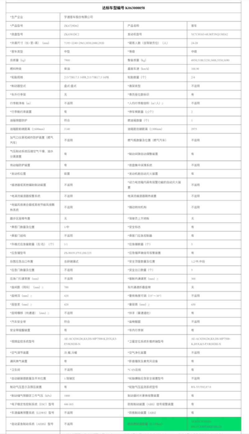 | 客車品牌 | 宇通客車 | 上牌時間 | 2024-06-05 |