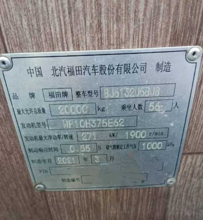 2021年4月上牌國六56座福田6132旅游客運(yùn)營運(yùn)車