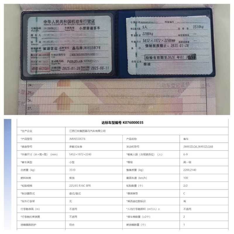 剛上牌7個月同款多臺準(zhǔn)新有公告9座江鈴晶馬6550小型客車,2025年1月上牌,C照可開,小高一級公告,江鈴493發(fā)動機,實木地板,2+2+2+3座椅布局,旅游客運可提營運,有興趣的來聊。