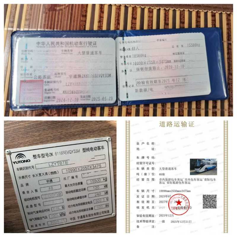 2025年早產(chǎn)20天有公告48座宇通營(yíng)運(yùn)版大電量新能源電車,2024年12月上牌宇通6116,深瀾動(dòng)力寧德電芯200度電池,電池加熱,司機(jī)獨(dú)立駕駛室,木紋地板,大型高一級(jí)公告,皮質(zhì)座椅,行李架,公路客運(yùn)可提營(yíng)運(yùn)!新能源電車還有金旅255度,宇通157度高密非營(yíng)運(yùn)有公告,303度12米50座旅游車,歡迎私信,接受置換。 本公司接受客車置換(國(guó)三國(guó)四國(guó)五,非營(yíng)運(yùn),旅游客運(yùn),公路客運(yùn),公交客運(yùn)都可以)。我們有著豐富的外遷內(nèi)地城市經(jīng)驗(yàn)。也可做正規(guī)出口手續(xù)。我們?cè)趶V東省珠三角區(qū)域(深圳、廣州、珠海、佛山、東莞、惠州)從事二手車數(shù)十年,全部是薄利多銷的價(jià)格出售,不管是單臺(tái)還是批量•均享受最誠(chéng)信的合作態(tài)度。也可以根據(jù)您需要的指定車型來(lái)優(yōu)選匹配,柴油.油電混合、新能源純電動(dòng)均可在珠三角區(qū)域看到現(xiàn)車,各種品牌都有,油車,新能源電車,油電混合,天然氣客車等,可安排師傅代駕送車,或者物流配送發(fā)往全國(guó)。我們的宗旨:不但銷售的車型豐富多元化,服務(wù)更是全方位:可視頻看車定車,可代駕送車。另外本公司常年收購(gòu)2座-55座客車,中巴、大巴都可以操作。 公司地址:1、深圳市南山區(qū)西麗街道曙光社區(qū)云家供應(yīng)鏈有限公司宿舍101車友匯鑫汽車貿(mào)易有限公司 2、深圳羅湖區(qū)寶崗路1號(hào)淘車吧