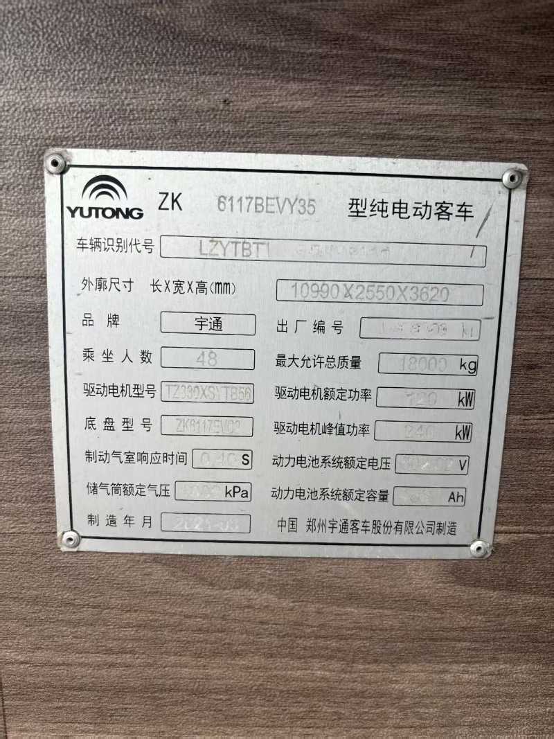 | 客車品牌 | 宇通客車 | 上牌時間 | 2021-04-20 |