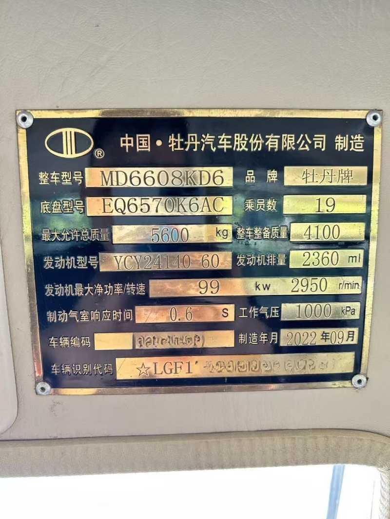 | 客車品牌 | 牡丹客車 | 上牌時間 | 2022-10-19 |