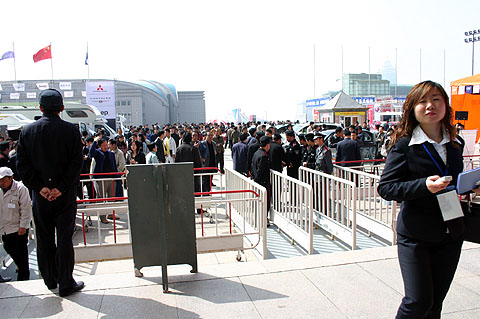 昨天是五一黃金周的第一天,也是車展的第三天,前去國際會展中心看展的人比前兩天一下驟增幾倍,幾乎爆棚。到上午十點左右,展會現(xiàn)場就被觀眾堵的水泄不通,甚至到下午閉館時間,觀眾還是絲毫沒有離開之意。組委會只好臨時決定,將觀展時間從下午4點延長至5點鐘。