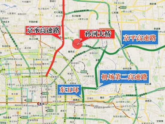 (三)由京密路方向出京的車輛,可經(jīng)東五環(huán)路、機(jī)場(chǎng)第二高速路、京平高速路至順義、平谷繞行。