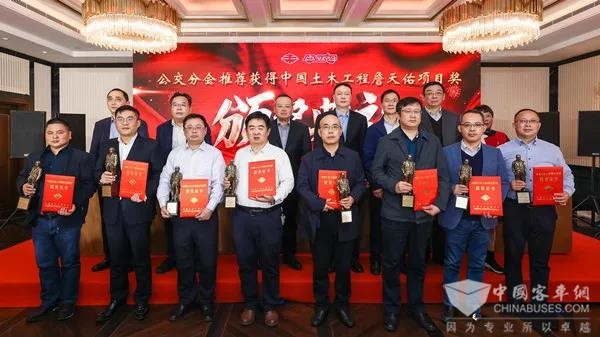 會(huì)議最后,頒發(fā)了公交分會(huì)推薦獲得中國(guó)土木工程詹天佑項(xiàng)目獎(jiǎng)。2021年9 月,由公交分會(huì)推薦申報(bào)的城市公共交通工程項(xiàng)目“武漢東湖國(guó)家自主創(chuàng)新示范區(qū)有軌電車試驗(yàn)線工程”,榮獲第十八屆中國(guó)土木工程詹天佑獎(jiǎng),這是全國(guó)有軌電車行業(yè)首個(gè)獲此殊榮的工程項(xiàng)目。同時(shí),該獲獎(jiǎng)工程項(xiàng)目也是繼“常州市 BRT 一號(hào)線工程”、“無(wú)錫市綜合交通樞紐”、“廣州市中山大道快速公交(BRT)試驗(yàn)線”工程后,由公交分會(huì)推薦的第四個(gè)榮獲詹天佑獎(jiǎng)的工程項(xiàng)目。據(jù)了解,2021年10 月,公交分會(huì)推薦的“成都金沙公交樞紐綜合體產(chǎn)業(yè)融合 TOD 創(chuàng)新試點(diǎn)項(xiàng)目”,目前已順利通過(guò)第十九屆詹天佑獎(jiǎng)的初審。