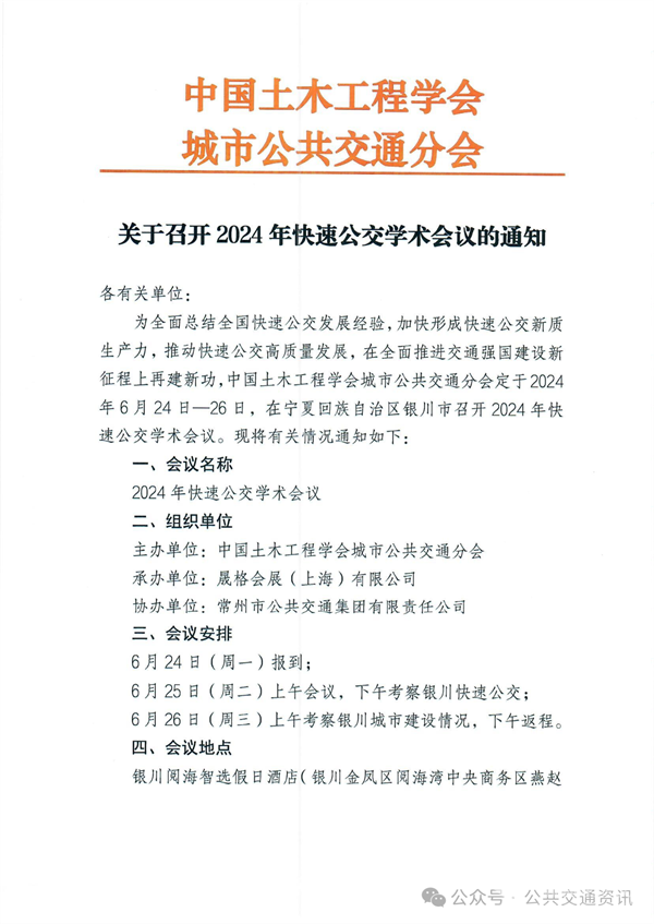 為公交行業(yè)高質(zhì)量發(fā)展蓄勢賦能!2024年快速公交學術(shù)會議定檔銀川