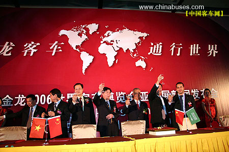 2005年大金龍在海外的表現(xiàn)相當優(yōu)異,共完成出口額約3億元人民幣,增值速度達到了250%。今年以來,大金龍更是喜事連連,和利比亞等多個合作伙伴達成了共同合作。于2006年3月27日隆重召開的2006大金龍世界客車博覽亞洲展覽新聞發(fā)布會上,大金龍與幾大家海外合作伙伴舉行了舉世矚目的簽約儀式。大金龍在發(fā)布會現(xiàn)場舉行的四個外銷合作項目簽約儀式,分別為"大金龍-越南長海汽車公司"CKD合作項目、"大金龍-沙特國家貿(mào)易公司"意向購買協(xié)議,"大金龍-新西蘭亞倫旅游巴士有限公司"代理金龍客車銷售協(xié)議、"大金龍-利比亞