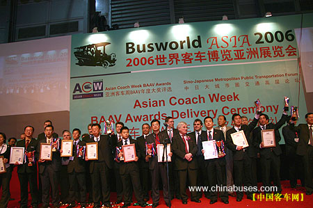 2006年3月28日至30日作為中國客車行業(yè)與世界交流的窗口世界客車博覽亞洲展覽會在上海新國際博覽中心再度隆重揭幕,世界客車博覽亞洲展覽會持續(xù)為中國客車業(yè)會聚良機、創(chuàng)造價值,不遺余力地推進中國客車和客運行業(yè)繁榮發(fā)展,助力中國客車闊步前行。2006亞洲客車之周BAAV年度大獎獎項設置科學、頒獎典禮將精彩紛呈,獎項是由歐洲世界客車聯(lián)盟組織所頒發(fā)的并授予年度最佳客車制造企業(yè)的大獎。公正、公平、公開的BAAV大獎代表了國際權威的褒獎,體現(xiàn)了獲獎客車制造商的產(chǎn)品在全球客車制造領域處于領先水平,被認為是中國客車登上世界舞臺的通行證。再度震撼出爐的年度權威評獎,歐洲評委的評審活動,帶來世界客車聯(lián)盟專業(yè)國際標準評獎理念,獎項設置和評選流程將使傳統(tǒng)的評獎活動為新年度的活動賦予權威性和國際影響力,在中國客車界內引起了強烈的反響?筒⿻牟邉澋幕顒佣贾荚诔蔀橐粋高端、獨特的交流渠道,在平臺共享中營造精英文化。為客車行業(yè)優(yōu)勝劣汰的浪潮提供前瞻性的決策經(jīng)營,幫助客車企業(yè)在技術、規(guī)模和品牌營銷理念中提高產(chǎn)品能級,快速推陳出新,決勝于全球客車市場。同時,來自海內外各大專業(yè)媒體的記者團將全程報道評選頒獎活動并及時發(fā)布獲獎的最新消息。