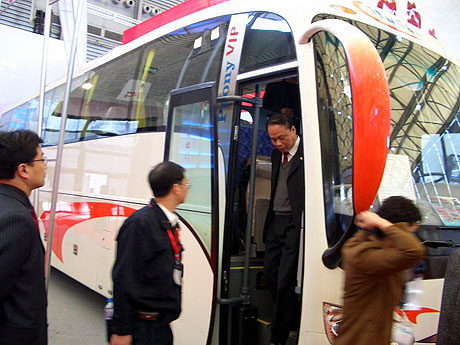 展會上,一位觀展的外籍女士對這款車表現(xiàn)出了極大興趣,她認為該款車型新穎流暢、充滿動感,營造了愉快爽悅的觀光心情,并表示要將該車型作為觀光客車介紹至東南亞地區(qū)。