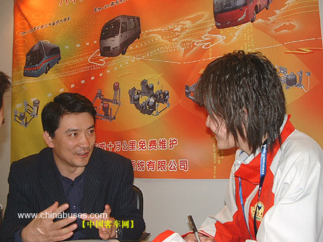 2006年3月28日在上海新國際博覽中心舉行的2006世界客車博覽亞洲展覽會(huì)上,記者有幸與北京精德精汽車底盤系統(tǒng)有限公司張海峰總經(jīng)理、高級(jí)顧問劉令勤先生進(jìn)行一番交流。