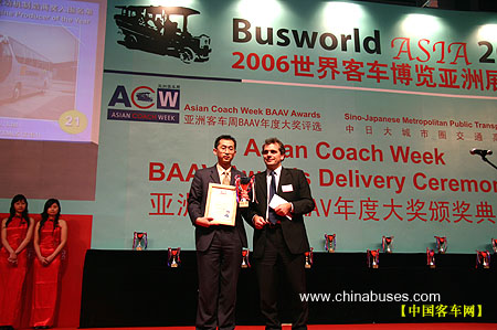 3月28日下午5點30分,2006亞洲客車周---BAAV年度大獎頒獎典禮在busworld四號館內隆重揭曉,上海加冷松芝汽車空調有限公司榮獲06年最佳客車空調制造商獎。