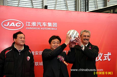 3月29日,是中國客車與中國足球值得紀念的日子。安徽安凱汽車股份有限公司與上海聯(lián)城俱樂部,在國際會展中心聯(lián)合舉行新車交接儀式,這是安凱公司與中國足球再次聯(lián)結(jié)姻緣。