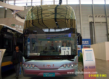 浙江青年尼奧普蘭汽車集團(tuán)有限公司的此次參展的三款豪華車型之一,"青年·太空線"JNP6137S是在歐洲之星基礎(chǔ)上的又一力作,該車在延續(xù)了歐洲之星原有的高安全性,舒適性和豪華性的同時(shí),通過獨(dú)特創(chuàng)新設(shè)計(jì),大大提高了客戶的創(chuàng)利能力,拓展了客車傳統(tǒng)標(biāo)準(zhǔn)的盈利模式,同時(shí)該車也是國(guó)內(nèi)唯一能在高速路上行駛的雙層豪華大客車。