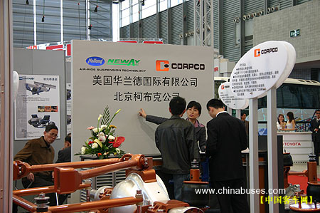 | 2006世界客車博覽亞洲展覽會(huì)上,柯布克具有的廣泛行業(yè)影響力,使得柯布克的展臺(tái)成為行業(yè)人士關(guān)注的焦點(diǎn)。本次展會(huì),柯布克共帶來4款產(chǎn)品:F65G、R130G、R130A、ADFS。F65G是針對(duì)中國(guó)大客流量大、頻繁制動(dòng)開發(fā)的大載荷承載結(jié)構(gòu)和加強(qiáng)導(dǎo)向系統(tǒng)。R130A是針對(duì)中國(guó)客車重載荷、高重心、使用山區(qū)彎道多、道路條件差、高強(qiáng)度運(yùn)輸而開發(fā)的4*4*4結(jié)構(gòu)懸架系統(tǒng),具有良好的舒適性、可靠性荷穩(wěn)定性。