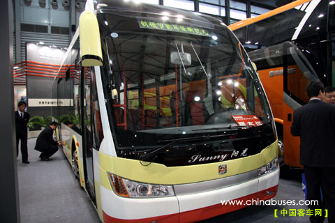 中通陽(yáng)光SUNNY LCK6120G-3--都市星干線。中通陽(yáng)光LCK6120G-3是一款針對(duì)大中型城市全新開(kāi)發(fā)的大型低入口高檔快速公交。下線當(dāng)月即贏得天津公交集團(tuán)快速城市交通線路的批量訂單,成功進(jìn)入國(guó)內(nèi)高端市場(chǎng)。產(chǎn)品在充分考慮現(xiàn)代美學(xué)與空氣動(dòng)力學(xué)原理的基礎(chǔ)上,大膽采用大圓角子彈頭式流線外形,車(chē)身造型時(shí)尚流暢?照{(diào)外部機(jī)組采用了隱藏于頂蒙皮之內(nèi)的獨(dú)特布置方式,極大的增強(qiáng)了車(chē)輛的整體感。該款產(chǎn)品一級(jí)踏步上沿離地高度僅有340mm,并采用國(guó)際先進(jìn)的ECAS系統(tǒng),保證乘客上下車(chē)輛的安全和方便;采取提高車(chē)內(nèi)后部?jī)?nèi)高的設(shè)計(jì)方式,增高后部乘客的頭頂空間,處處體現(xiàn)人性化設(shè)計(jì)理念。