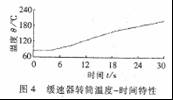 試驗環(huán)境溫度為20℃,電壓26V。從圖4所示的緩速器轉(zhuǎn)筒的溫度-時間特性中可見,隨著轉(zhuǎn)筒式電渦流緩速器實施制動時間的增加,轉(zhuǎn)筒溫度開始幾乎無變化,隨后以平緩直線上升,在制動時間內(nèi)最高溫度值為195.7℃,這說明溫升控制在合理范圍內(nèi),可保證制動性能的穩(wěn)定性。