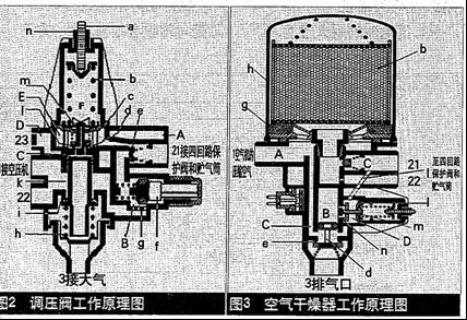 2.空氣干燥器:目前空氣干燥器已在我國商用車上普遍使用它既具有干燥空氣的作用同時又具有調(diào)壓閥的功能。對空氣進(jìn)行干燥的主要作用是去除壓縮空氣中所含的水分,有效防止空氣管路及氣動元件的銹蝕以及寒冷地區(qū)空氣管路和氣動元件的結(jié)冰損壞,可大大提高行車的安全性。