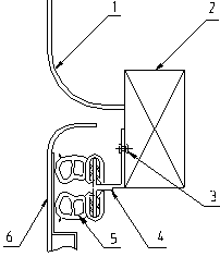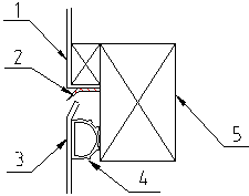 圖4、5所示的是一無止口的艙門密封結(jié)構(gòu),直接在艙體骨架上粘貼橡膠密封膠條,通過門板對(duì)膠條的壓合形成密封。安裝工藝簡單,工人操作方便,減輕工人勞動(dòng)強(qiáng)度;同時(shí)節(jié)約材料成本、工人工時(shí)成本費(fèi)用。且避免了止口在艙門多次開啟后易產(chǎn)生變形的缺點(diǎn)。