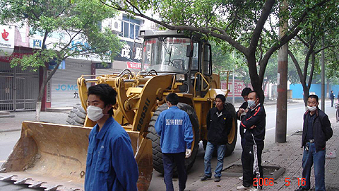 今天是5.12地震的第4天了,是生命的極限,對埋在地下的人是極大的考驗,搶救工作更為迫切!我們維修人員上午趕赴工地,為工作了一夜的裝載機進行檢修。