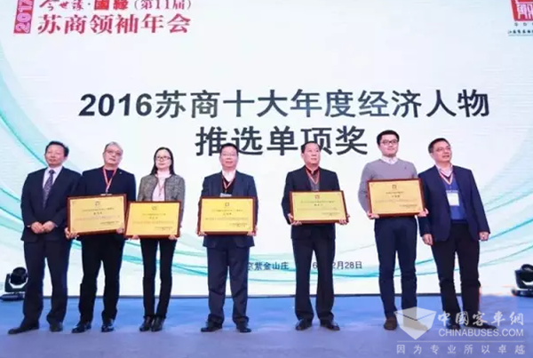 作為歲末江蘇商界最值得期待的盛事,“2017第11屆蘇商領(lǐng)袖年會”吸引了省內(nèi)外知名商界領(lǐng)袖、江蘇政界要員、學(xué)界權(quán)威、產(chǎn)融大咖及主流媒體約500 余位各界精英齊聚南京。石俊峰董事長本次榮獲“2016蘇商十大年度經(jīng)濟人物最具創(chuàng)新獎”,體現(xiàn)了主辦方對龍蟠在科研創(chuàng)新領(lǐng)域內(nèi)所取得成果的高度認可。未來,龍蟠將積極響應(yīng)“十三五”規(guī)劃,與省內(nèi)優(yōu)秀企業(yè)共同努力,為提升江蘇經(jīng)濟整體競爭力和可持續(xù)發(fā)展力作出貢獻。
