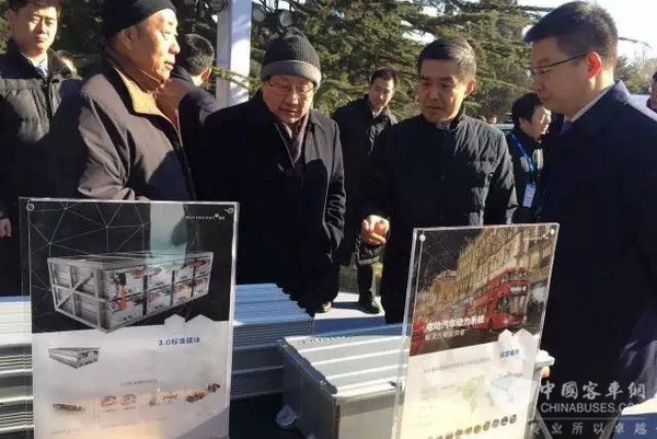 全國政協(xié)副主席、中國科學(xué)技術(shù)學(xué)會(huì)主席、中國科學(xué)技術(shù)部部長萬鋼(右三)指出,微宏的快充模式除了適用于公交車,在出租車上也可以使用。