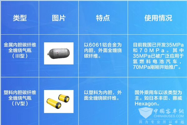 主要應用于車載系統(tǒng),大多使用金屬內(nèi)膽碳纖維全纏繞氣瓶(III型)和塑料內(nèi)膽碳纖維全纏繞氣瓶(IV型)。