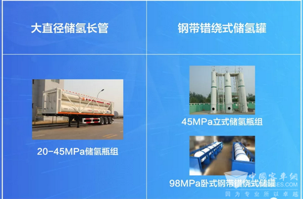 主要應用在固定場所,如制氫廠、加氫站以及其他需要儲存高壓氫氣的地方。目前主要使用大直徑儲氫長管和鋼帶錯繞式儲氫罐。