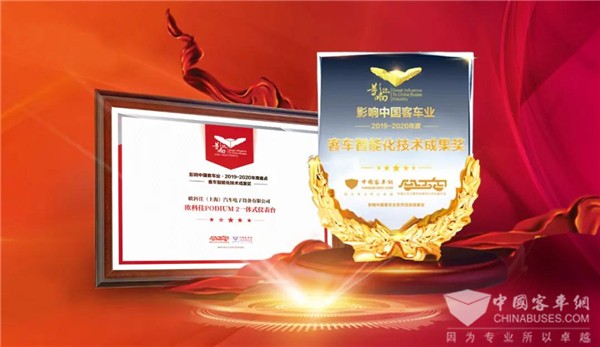 健康、安全、配置豐富、國際標(biāo)準(zhǔn),歐科佳PODIUM 2一體式儀表臺(tái)榮獲第14屆影響客車業(yè)·2019-2020年度“客車智能化技術(shù)成果”獎(jiǎng)。