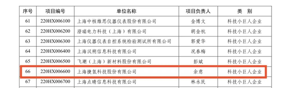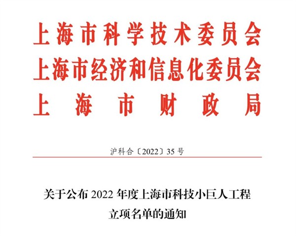 入選上海市科技小巨人企業(yè)