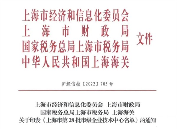 獲上海市企業(yè)技術(shù)中心認(rèn)定